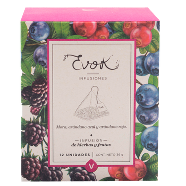 • Infusión de mora, arándano rojo y arándano azul por 12 unidades en tisana Infusión de mora, arándano rojo y arándano azul por 12 unidades en tisana